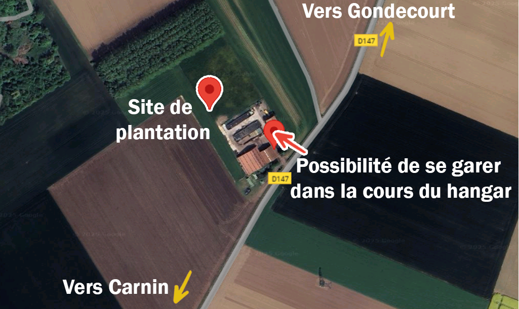 📍RDV : 9h30 directement sur la parcelle à Gondecourt située près de la D147 aux coordonnées GPS [50.531424, 2.966945]. Se garer dans la cours du hangar à côté du site de plantation.
